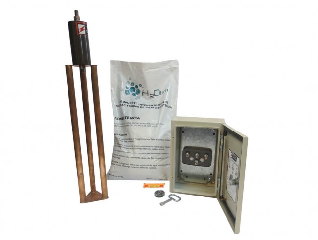 Electrodo: TOTAL A TIERRA electrodo de puesta a tierra modelo TG-100K. Hecho de cobre electrolítico altamente conductor, especialmente tratado para retardar los efectos de la corrosión. El dispositivo de filtrado incluye CSF de baja frecuencia con acoplamiento a 1/2 ” de masa. Contiene una bobina de acoplamiento para instalaciones residenciales o de baja actividad eléctrica. Acoplador: Acoplador de impedancia TOTAL A TIERRA modelo TGC01 con capacidad de 1500 amperios, en caja NEMA 4 de 20 x 30 x 12 cm. Su fijación a electrodos naturales aumenta el área de instalación. Compuesto H2Ohm: El compuesto base orgánico H2Ohm está hecho con material higroscópico coagulante húmedo. Certificado de prueba LAPEM y certificado de laboratorio acreditado por EMA (Entidad Mexicana de Acreditación), con valores en el estándar CRETIB para no toxicidad o daño ambiental. Aplicación recomendada: Sitios de bases de datos. Transformadores Bastidores de telecomunicaciones. Sistemas satelitales. Sistemas de radiofrecuencia. Sistemas de control industrial.